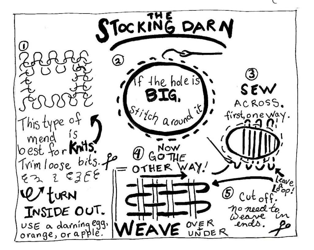 My objective with mending is first to get the thing back in circulation. In use is better than perfect. Perfect can be figured out later. It’s better to be wearing that sock again, even if your darning a little wonky. Your stitching gets better as you go. Utility and beauty. But first, utility.